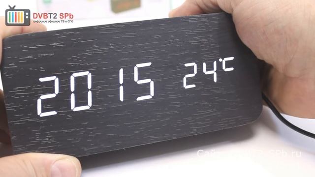 Яркое свечение светодиодных цифр проецируется через панель, имитирующую дерево