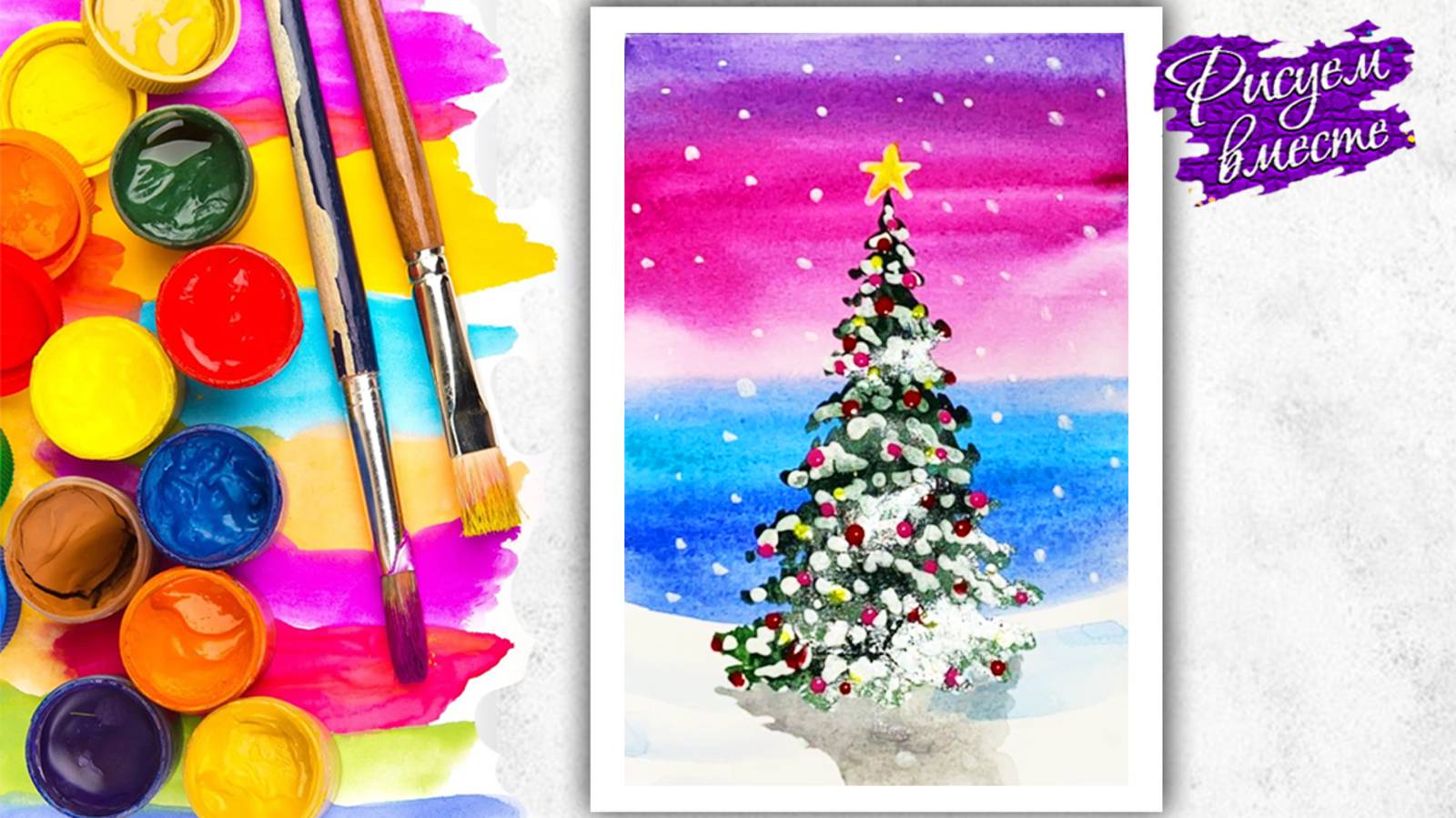 Вариант для урока рисования в школу. Урок ИЗО 2 класс "Цвета радуги в Новогодней ёлке". Декоративная композиция. В этом видео уроке рисования я покажу вам, как быстро и легко нарисовать яркую новогоднюю ёлочку красками и украсить её разноцветными шарами и подарками.