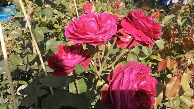 У розы Фальстаф (Falstaff) роскошные цветы пурпурно-фиолетового глубокого оттенка. Камера не передаёт реальный цвет.