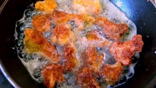 - нагреть рафинированное растительное масло. Проверить готовность - капнуть каплю кляра - масло должно запузырится, но не дымиться. Посуды должна быть сухая и чистая, небольшого диаметра с высокими краями, так меньше масла уйдёт