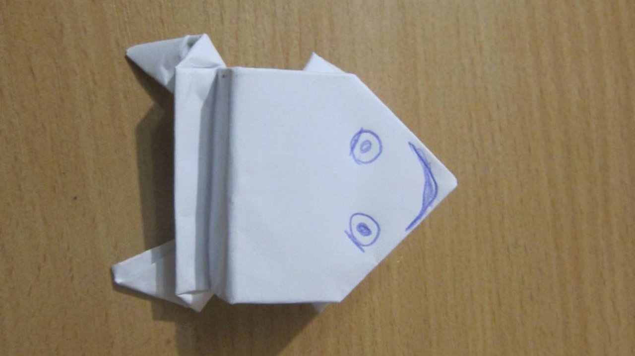 Для изготовления лягушки из бумаги, которая прыгает, я использовал лист А4. Из него вырезал квадрат и сложил по простой схеме, которая показана в видео инструкции.