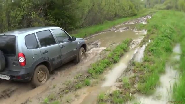 Шевроле Нива, едем по бездорожью в деревне. Какая дорога такой и автомобиль. смотреть онлайн