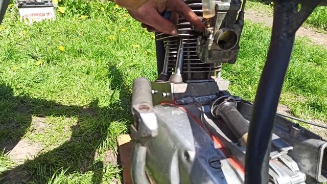 Пытаюсь запустить мотоцикл ИЖ Планета-4 после того как он простоял у меня в гараже 15 лет. Заливаю бензин, ставлю аккумулятор из скутера, проверяю свечу и показываю самодельную звездочку для ИЖ Планета 4.
