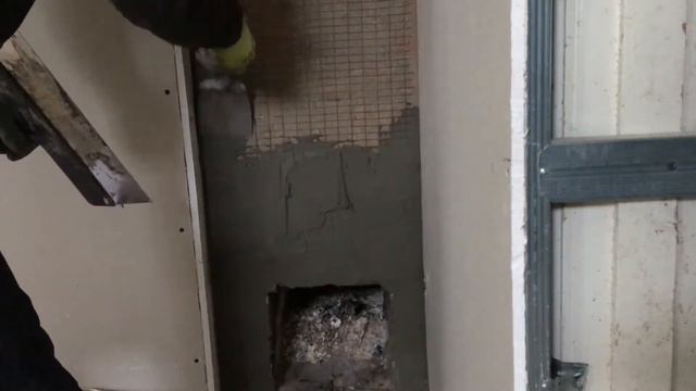 Укладка плитки и защитных уголков вокруг топочных дверок