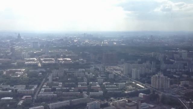 Открытая смотровая площадка в телебашне в Останкино. Высота от основания башни 340 метров. Вид от гостиницы Космос и далее по территории ВВЦ (ВДНХ)