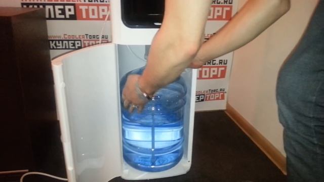 Обзор установки бутыли на кулер с верхней загрузкой: https://youtu.be/DY_ofObIxwU