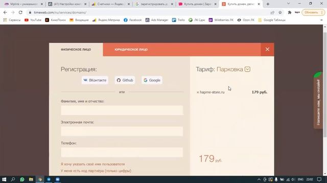 Регистрируем домен в рег.ру, хостинг, выкладываем сайт.