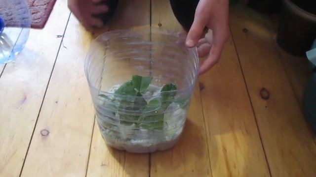 Перед посадкой черенки можно обработать «Корневином». Черенки втыкаю в землю на 2-3 сантиметра, на стакан надеваю прозрачный пакет или половину пластиковой бутылки (получается импровизированная тепличка), и ставлю в теплое место с рассеянным светом. Горшок должен быть в тепле, тогда укоренение пройдет быстро, но на него не должны попадать прямые солнечные лучи, иначе растение в тепличке попросту «сварится».