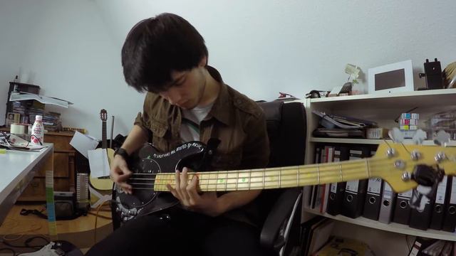 Ibanez SR505 w/DR Hi Beams, recorded into Pro Tools 10 using a Focusrite Pro 40 interface and Amplitube 3.