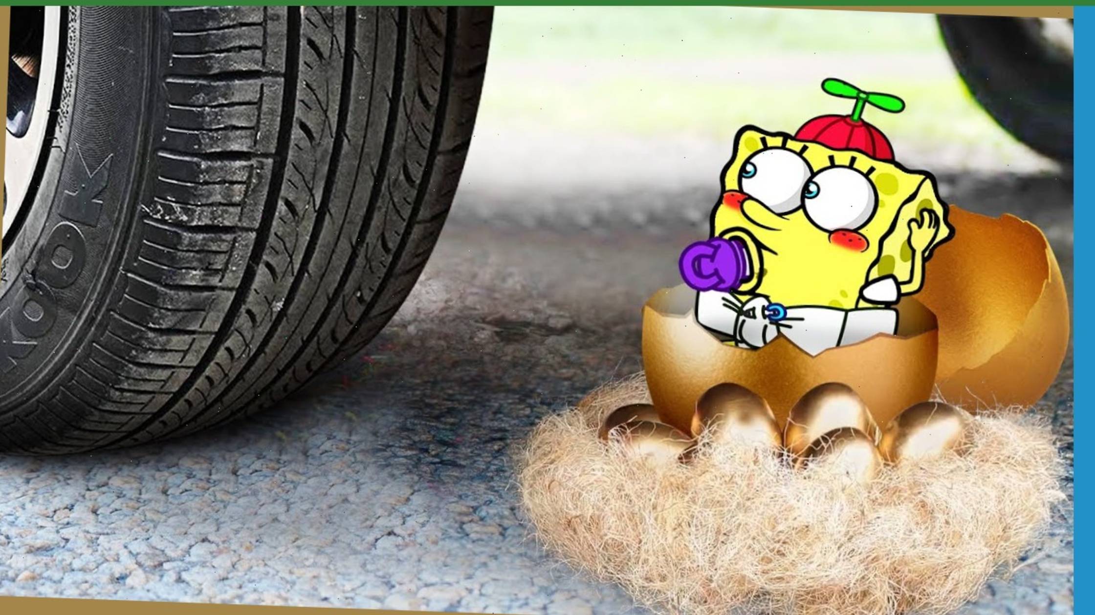 Яркие мультики про Спанч Боба. Веселые эксперименты на улице с большой машиной.