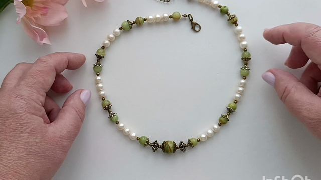 Из жемчуга и бусин гематита я собираю колье и серьги в комплект к Верочкиному браслету " Ночи Баку", а потом и ещё один браслет.