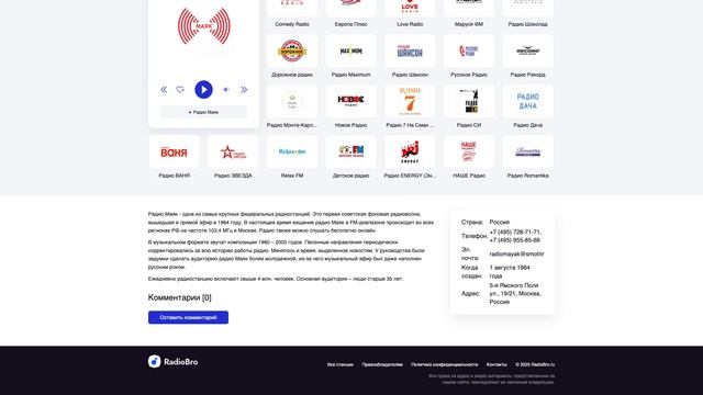 5. Широкая география вещания: станция доступна почти на всей территории России благодаря разветвленной сети передатчиков.