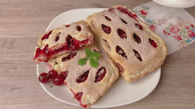 СЛОЙКИ С ВИШНЕЙ. Простой и очень вкусный десерт! смотреть онлайн