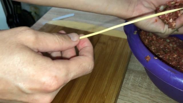 Люля-кебаб я буду готовить на деревянных шпажках, поэтому их предварительно нужно замочить на полчаса в теплой воде.