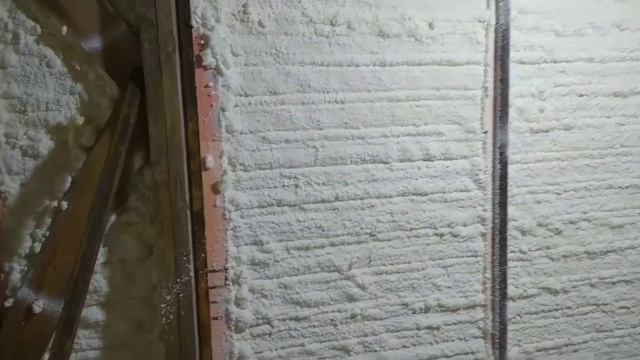 Утепление эллинга (гараж для лодки). Работы проходили в г. Кронштадт. Объем работ составил порядка 115 м2, время выполнения работ 3 часа. Работа проводилась путем напыления пенополиуретана с открытой ячеистой структурой. Толщина слоя 90-100 мм.