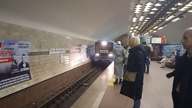 Метро поезд 81-717-714-5 "ЛВЗ" приписан к Электродепо ТЧ1 Ельцовское, "Новосибирск" снято на станции Сибирска.