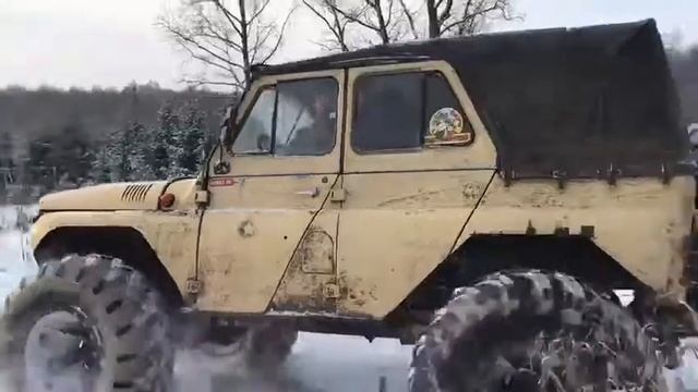 УАЗ Бобик rat look на ободрышах идп-284 по неглубокому снегу смотреть онлайн