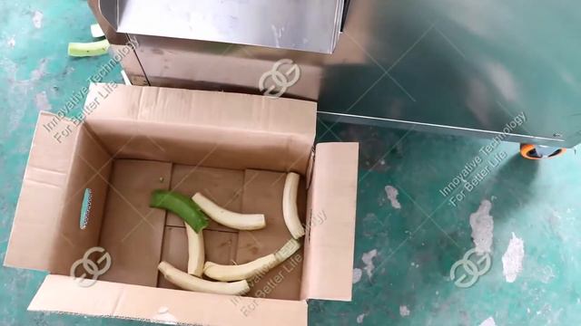 Advanced Green Banana Peeling Machine is our new design green banana peeling machine. It updates the feeding design, which only need worker to put the green banana in the inlet, then the machine will automatic feeding banana to continue. the green banana is peeled and the final peeled banana body is clean and has no damage on the banana surface. It is suitable for green bananas and green plantain. This banana peeler machine can perfectly peel a green banana with a bend shape and has a good peeling speed. The Peel and Banana Pulp will be discharged from different outlets which is allowed to connect with the following banana processing line. The green banana peeling machine is usually used in the banana chips production line.