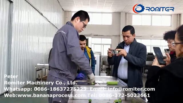 Note: at the beginning of the video, our worker shows the process for measuring the diameter of a banana. this is only for showing to the customer who purchases this machine and letting them know this machine is made according to their requirement and their banana size can use in this machine