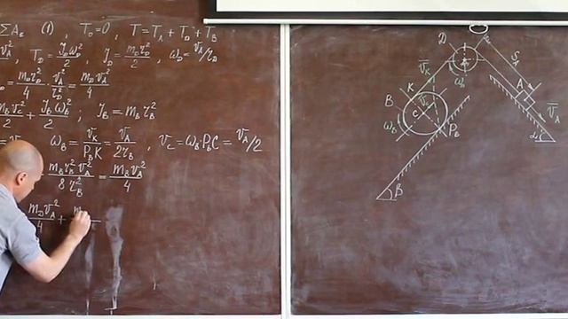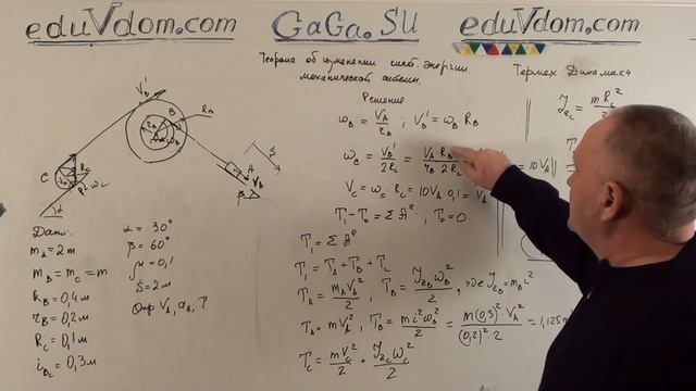 Решаем задачу определения ускорения точек механической системы с использованием теоремы об изменении кинетической энергии.