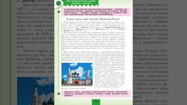 §22 "Центральная Россия: освоение территории и население", География 9 класс, Полярная звезда смотреть онлайн