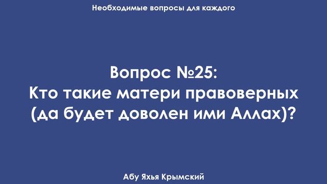 Вопрос № 25. Кто такие матери правоверных? | Абу Яхья Крымский смотреть онлайн