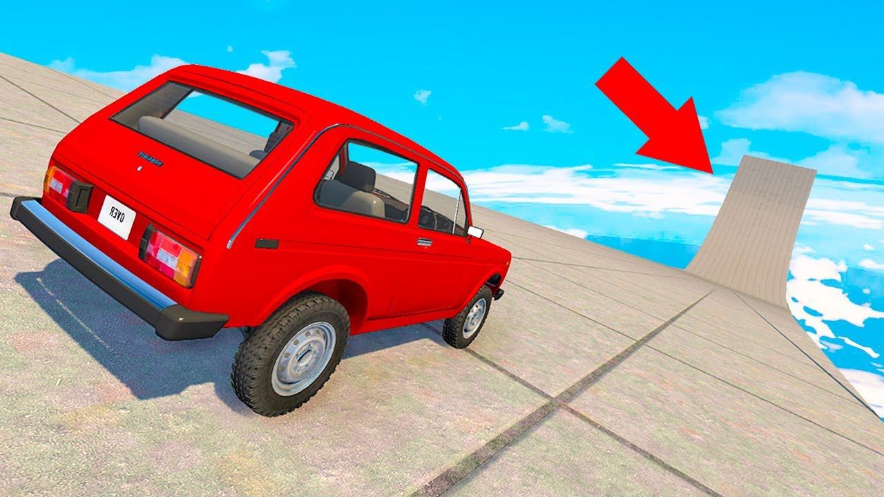 Играем в BeamNG.drive (Бименджи драйв) - Прыжки на рандомных машинах с огромном горки с трамплином! Скоростные заезды на выживание! Краш тест и аварии!