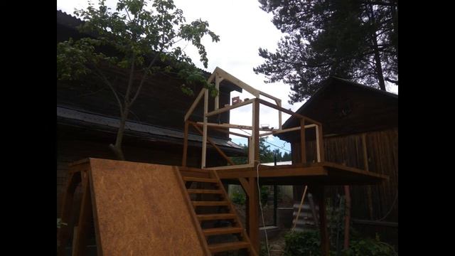 08:00 Строю крышу домика.