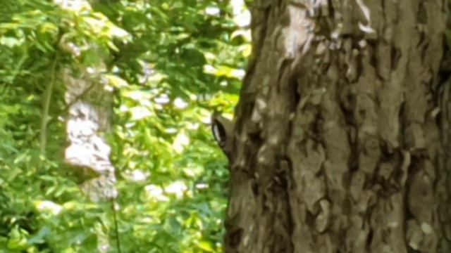 Самка большого пестрого дятла.