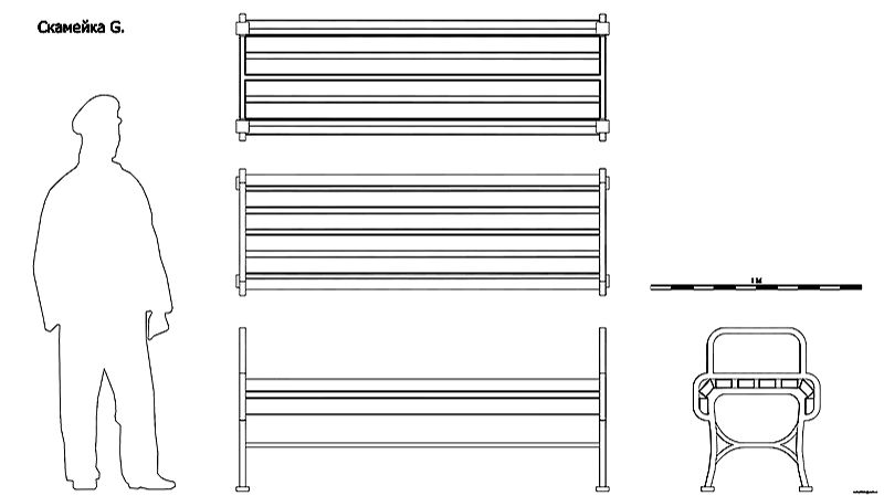 Скамейка B. Чертёж. Bench B. Drawings. смотреть онлайн
