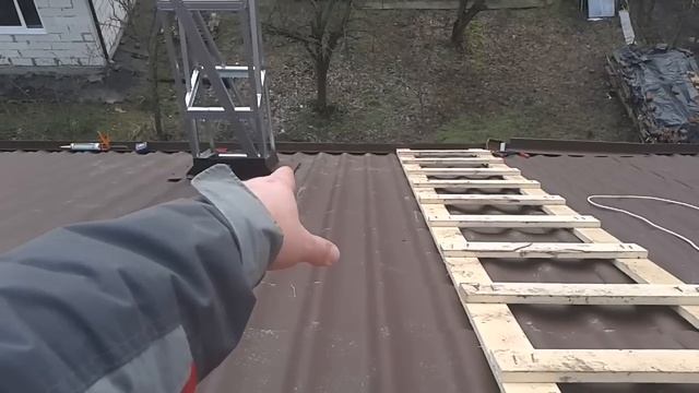 Монтируем пристенную лестницу на плоской кровле.