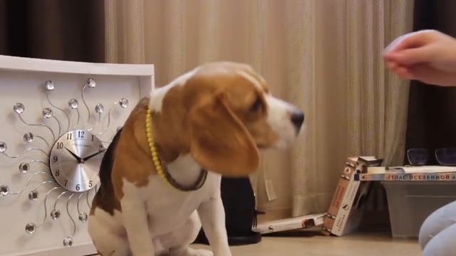 В тот момент, когда собака пыталась снять скотч, проводя по носу лапой, я кликала и давала лакомство.