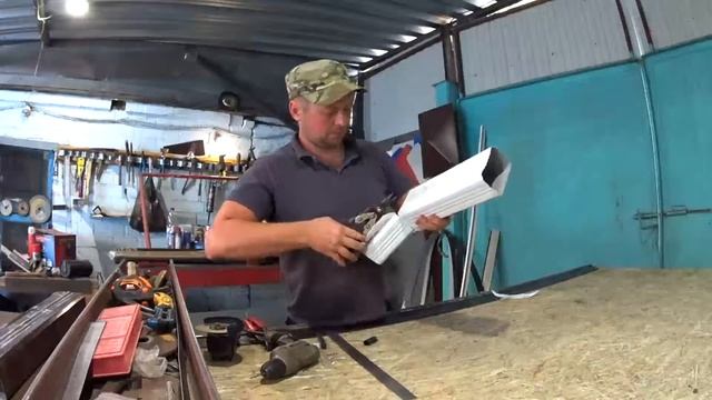Водосточная труба была смонтирована вместе с сливным желобом. Крепится к стене дома.