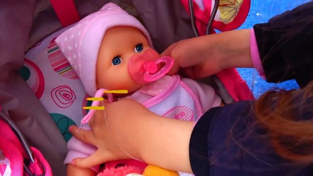 Crying Baby Doll, Little Girl Pushing Pink Pushchair, Baby Born doll video for kids