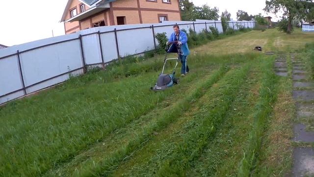 Покос травы газонокосилки Bosch AdvancedRotak 760 смотреть онлайн