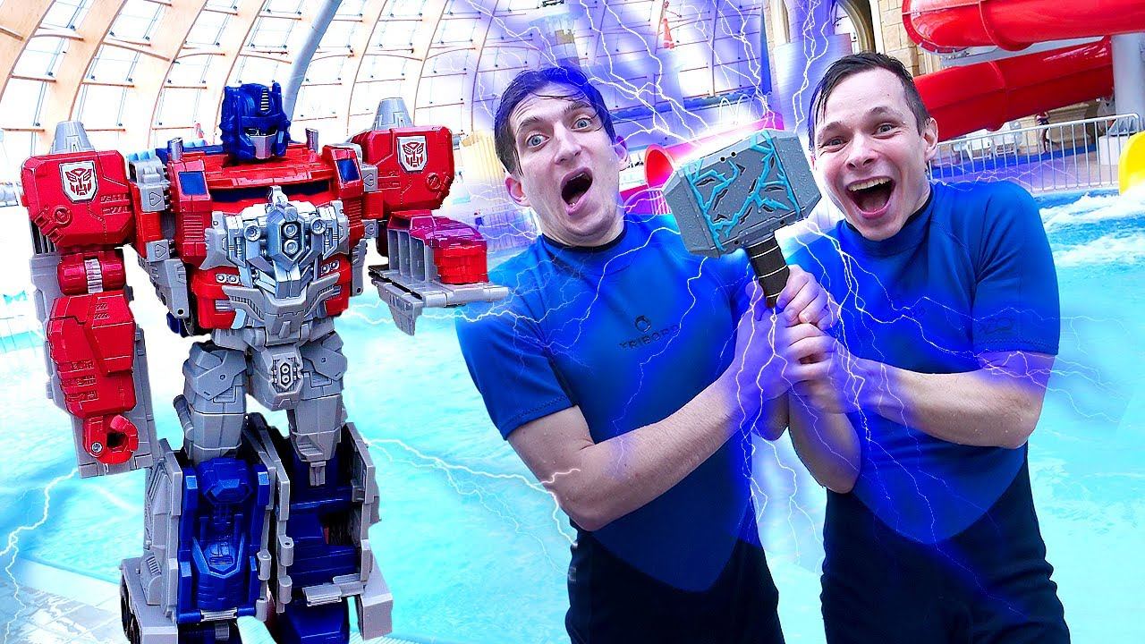 Роботы Трансформеры в Аквапарке Как остановить Молот ТОРА? Акватим и Оптимус в видео игре битве смотреть онлайн
