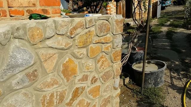 Цоколь с камня и забор с круглыми колонами смотреть онлайн