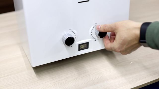Жидкокристаллический дисплей, размещенный на фронтальной панели проточного водонагревателя, отображает температуру подаваемой воды. Отрегулировать степень нагрева воды Вы можете благодаря наличию удобного термостата, расположенного рядом с LCD-дисплеем.