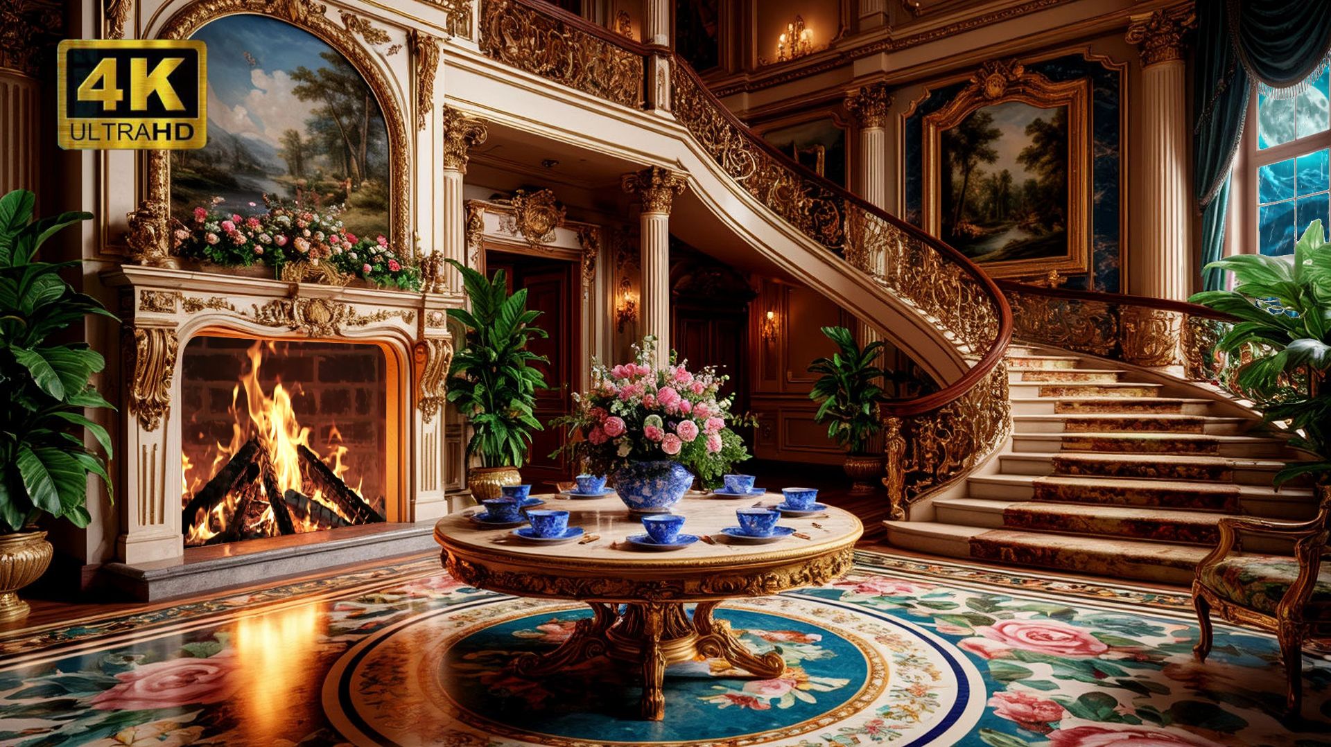 Камин и мурчащий кот смотреть онлайн