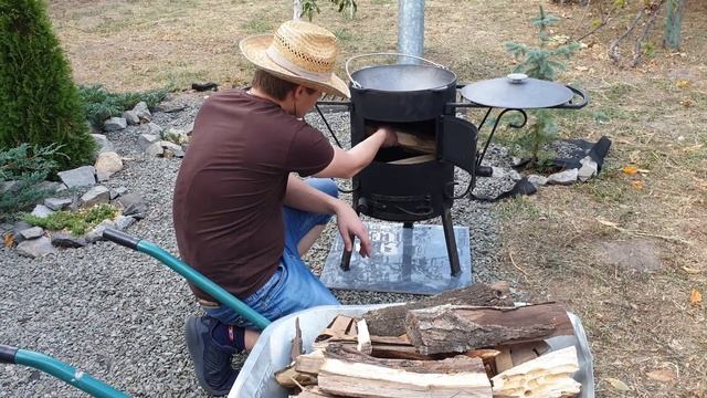 Устанавливаем печку для казана и выводим трубу на крышу навеса смотреть онлайн