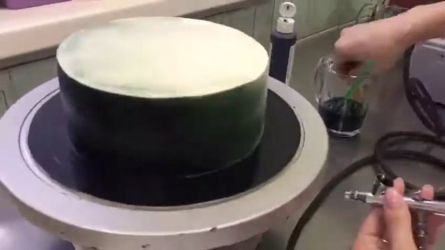 красим тортик аэрографом, готовим его к окончательному украшению