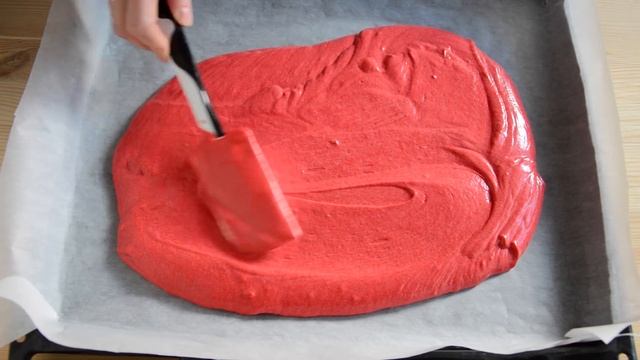 ❗️После того, как взбили яйца, на средних оборотах миксера начинаем добавлять красный краситель. Делать это нужно быстро, чтобы яичная масса не осела❗️
