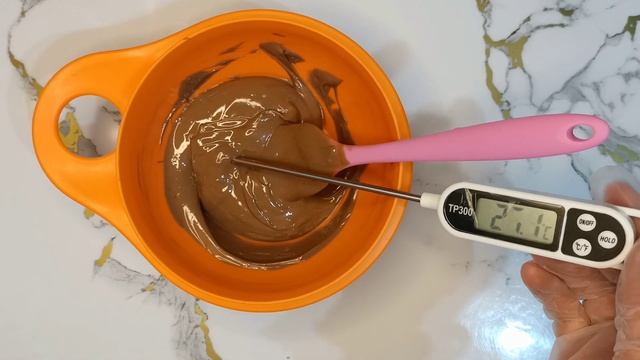 3⃣быстро аккуратно перемешиваем шоколад(главное,чтобы в него не попала не капля воды), охлажденая его до 27-28°С