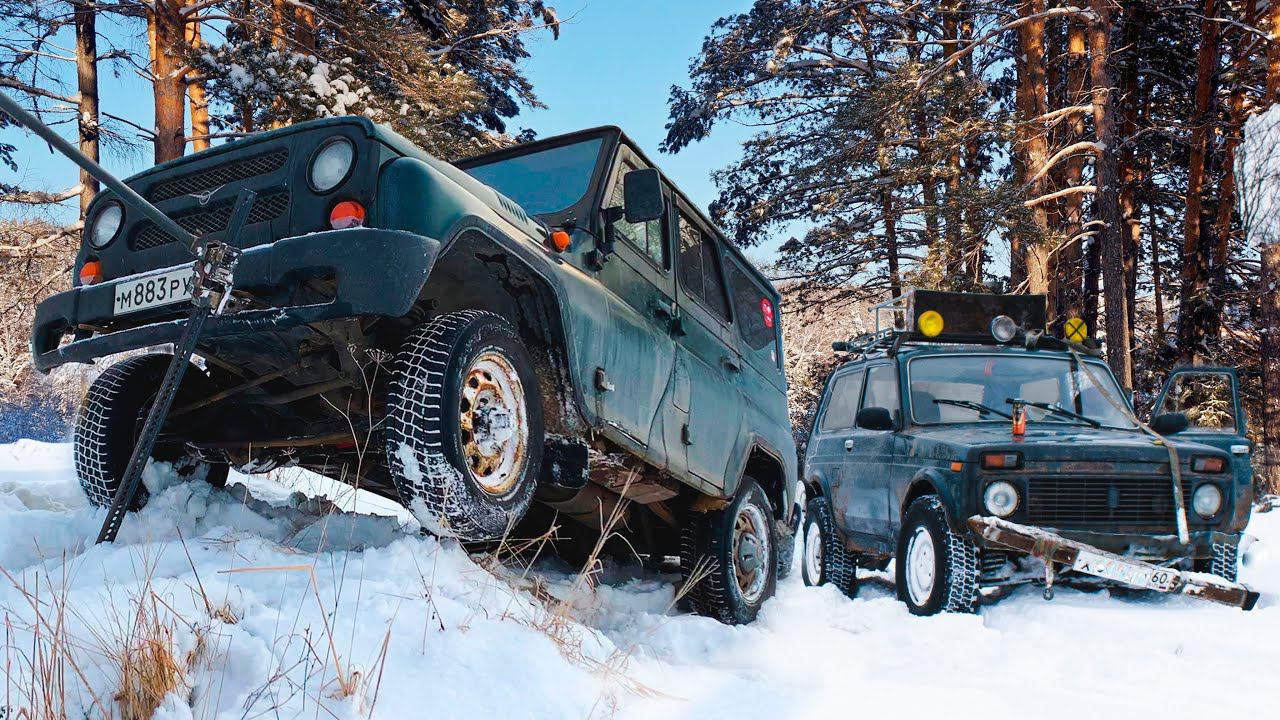 Уазы порвали Ниву на бездорожье. Жёсткий оффроуд во льдах.