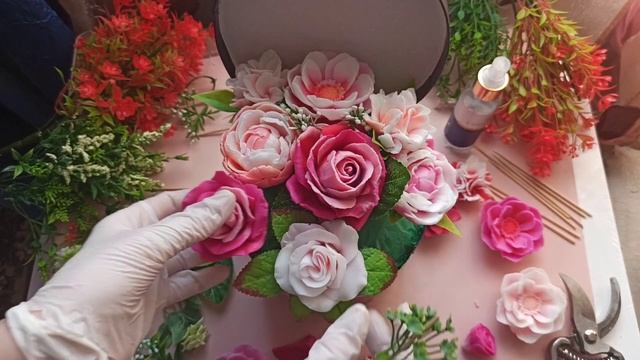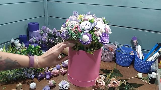 Большой букет из мыла в шляпной коробке.Мыльный букет.Цветы из мыла.Мыловарение.Мыльные цветы. смотреть онлайн
