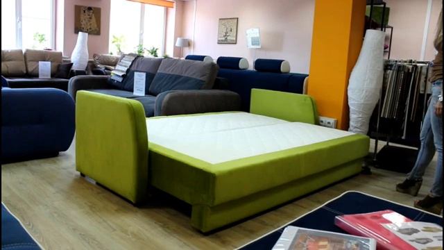 Лаконичный диван с большим спальным местом на экспозиции в мебельном салоне da Vinci смотреть онлайн