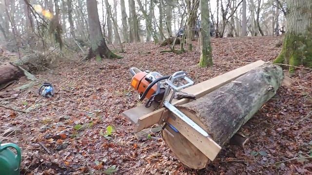 Пиление дуба самодельным приспособлением типа Логосоль