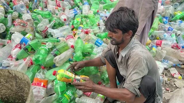 Plastic bottle flower vase making.