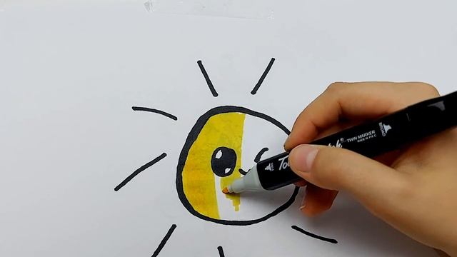 Как нарисовать яркое солнышко поэтапно фломастерами.