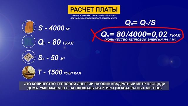 Расчёт ведётся на основе фактических данных счётчика с распределением на все квартиры.